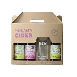 Hogan’s Alcohol Free Cider Gift Box – 2× High Sobriety Original, 1× Raspberry & Branded Glass